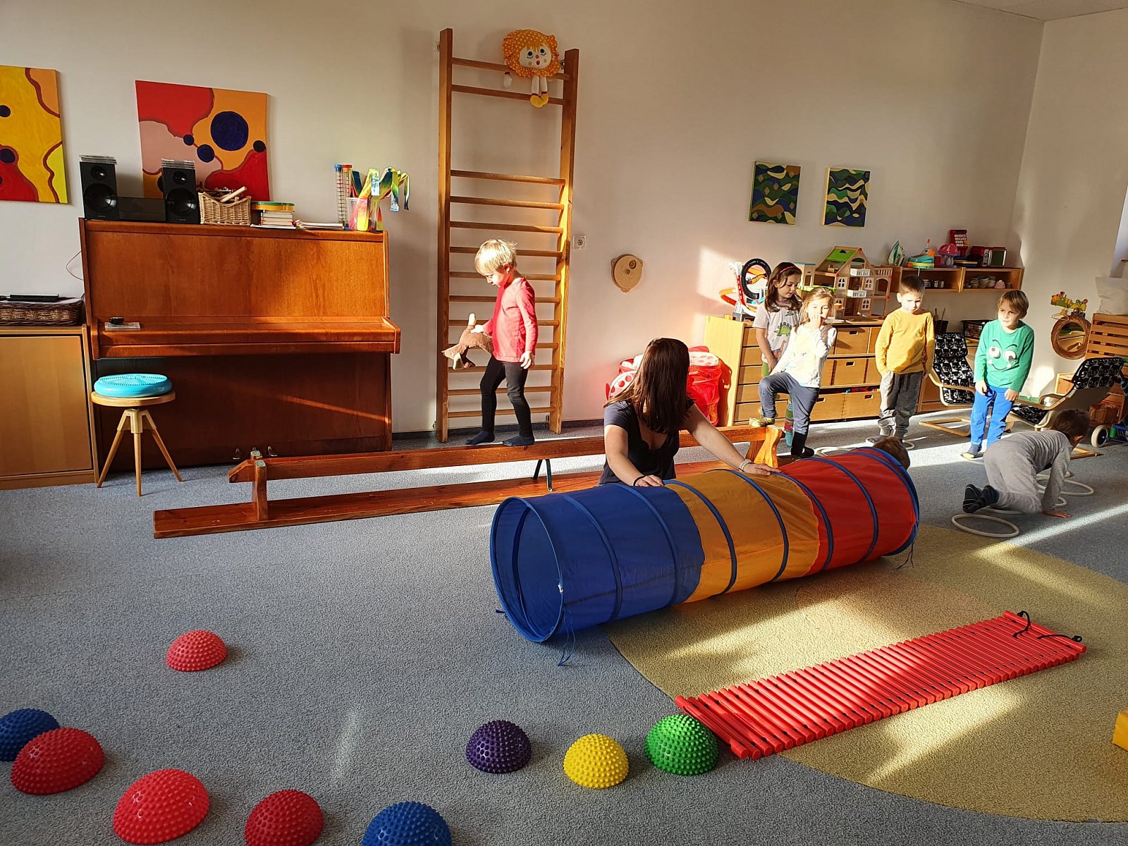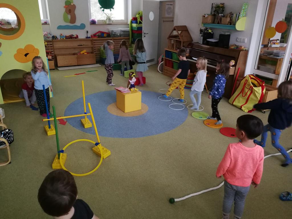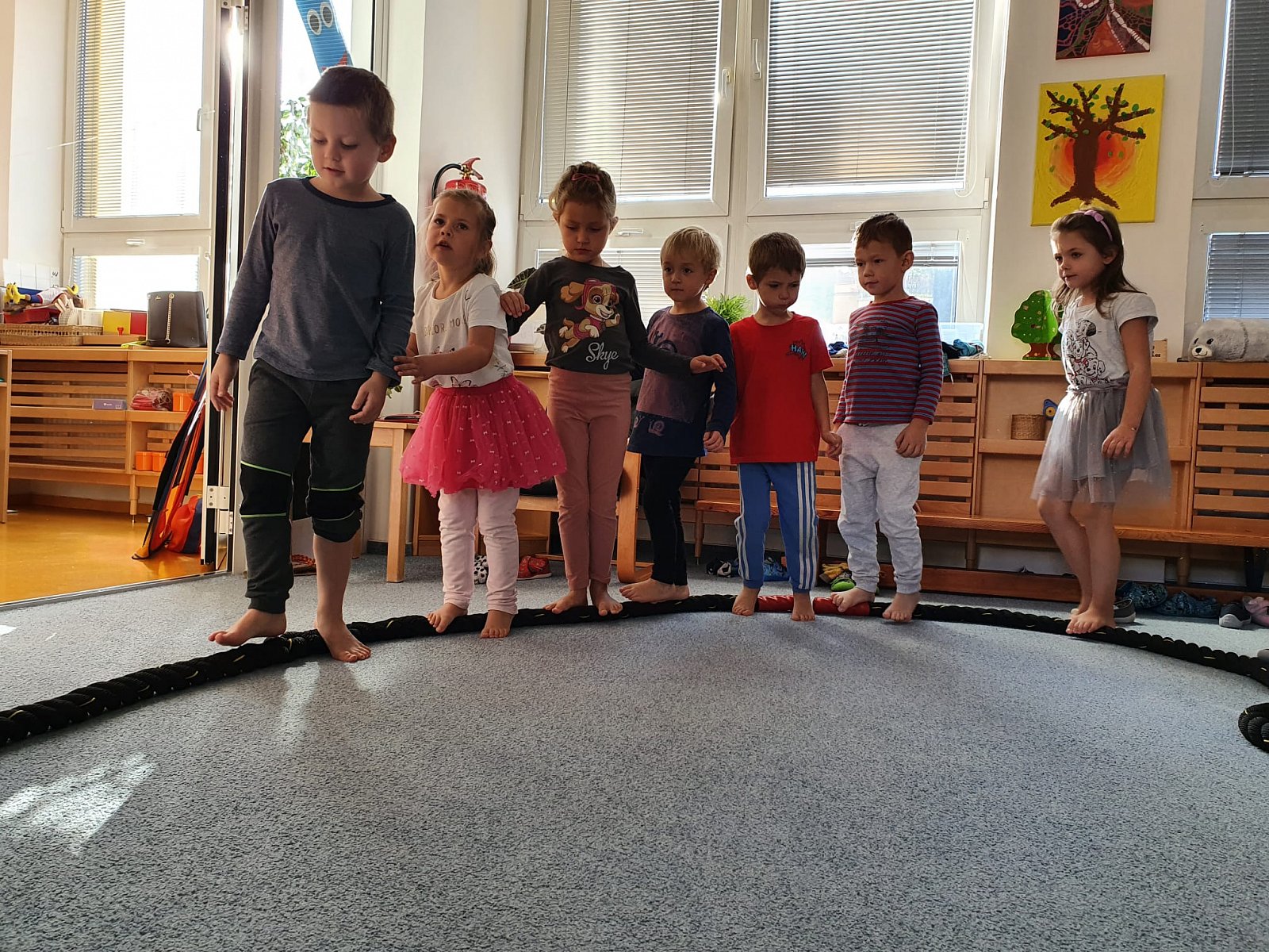 Naše děti se zapojily do projektu s názvem Se Sokolem do života aneb svět nekončí za vrátky, cvičíme se zvířátky. Projekt je určený pro děti od 3 - 6 let a v jeho rámci děti plní nejrůznější pohybové aktivity, které jsou rozděleny do pěti oblastí: přirozená cvičení, obratnost, dovednosti s míčem, rozvíjení poznání a netradiční činnosti. Každou z těchto oblastí reprezentuje zvířátko, podle kterého se děti mohou orientovat v jednotlivých úkolech. S kobylkou Emilkou trénují základní pohybová cvičení, s opičkou Haničkou obratnost a s ježečkem Marečkem cvičí s míčem. Veverka Věruška je učí novým věcem a rozvíjí jejich poznání a s beruškou Danuškou zkouší netradiční činnosti.