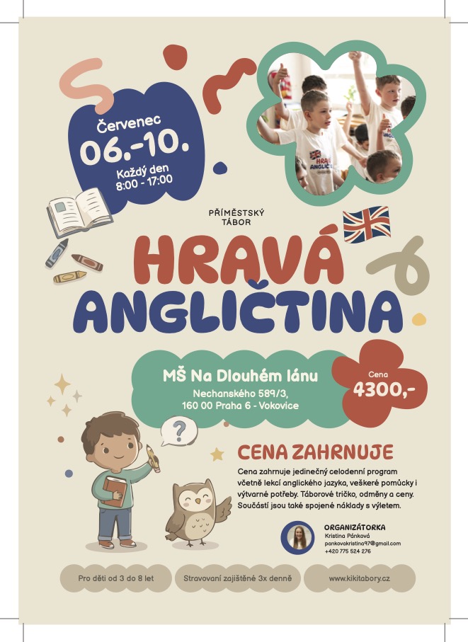 Přihlásit své dítě na příměstský tábor s Hravou angličtinou v MŠ Na Dlouhém lánu můžete zde přes tento odkaz: PŘIHLÁŠKA