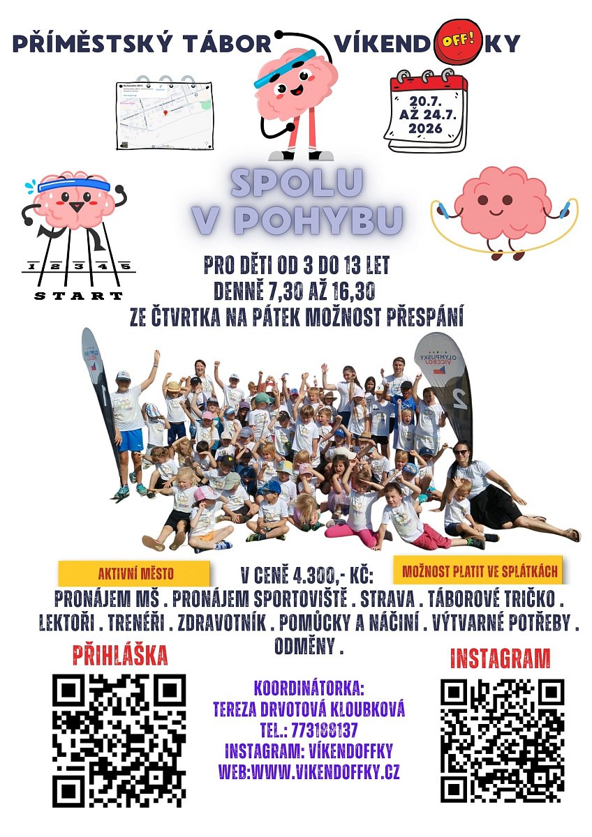 20. až 24. července 2026 VíkendOFFky Spolu v pohybu pro děti od 3 do 13 let za cenu 4.300,- Kč PŘIHLÁŠKA
