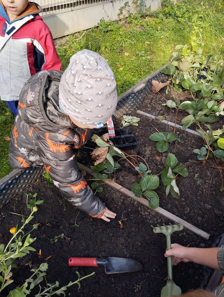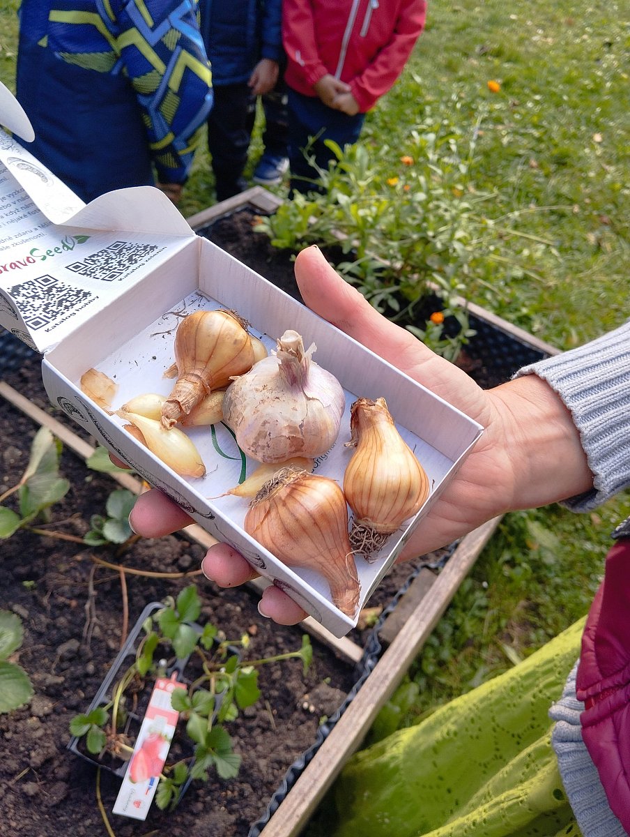 Během programu jsme se věnovali péči o půdu, sázení do vyvýšených záhonů i vytváření žížaliště. Projekt tak má dlouhodobý dosah, neboť zasazená semínka i cibuloviny děti denně zalévají a do žížaliště přidávají nově nalezené žížaly.