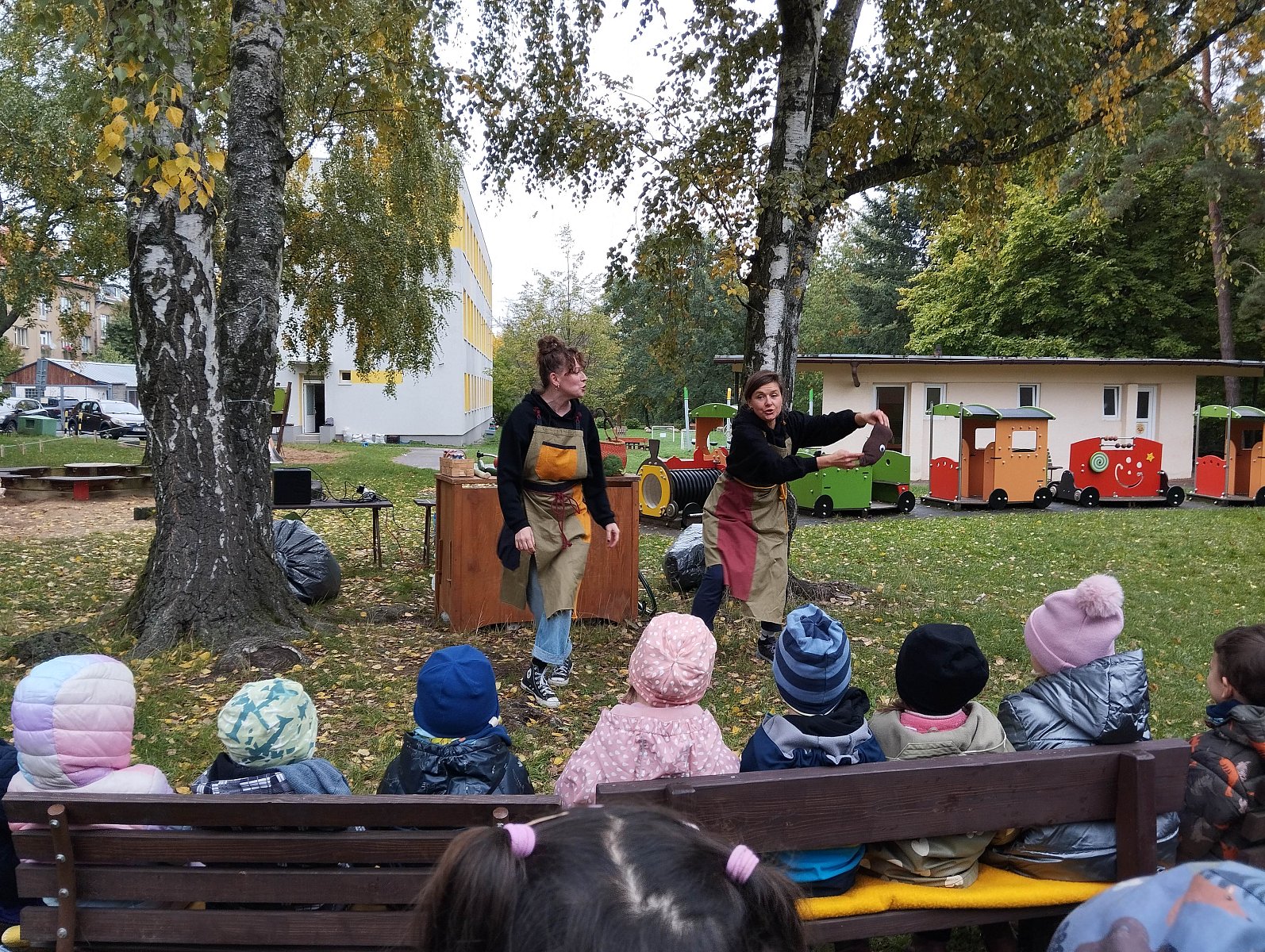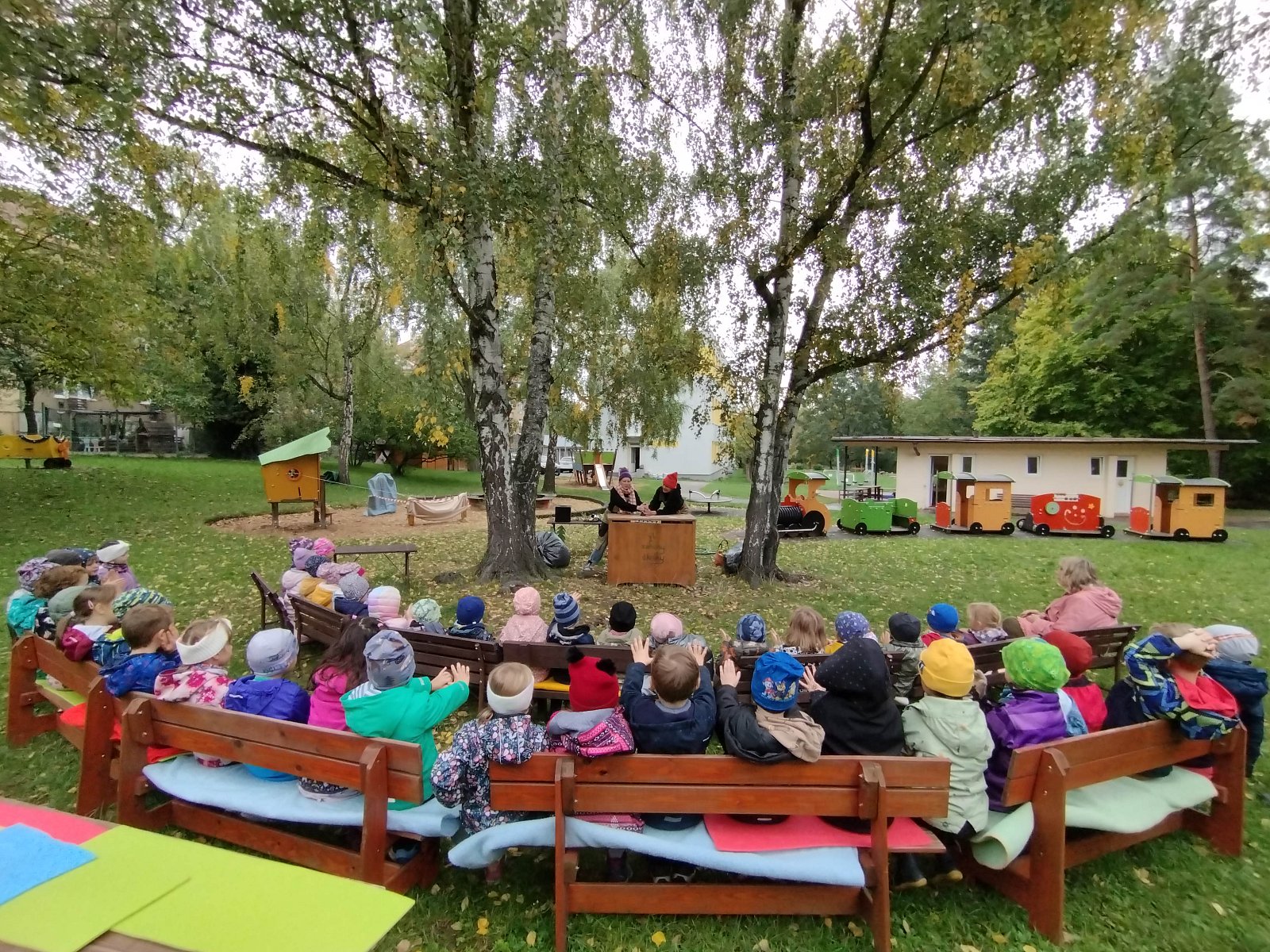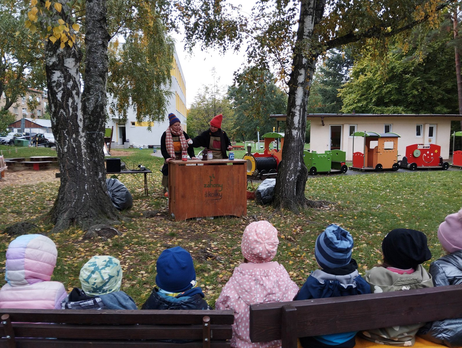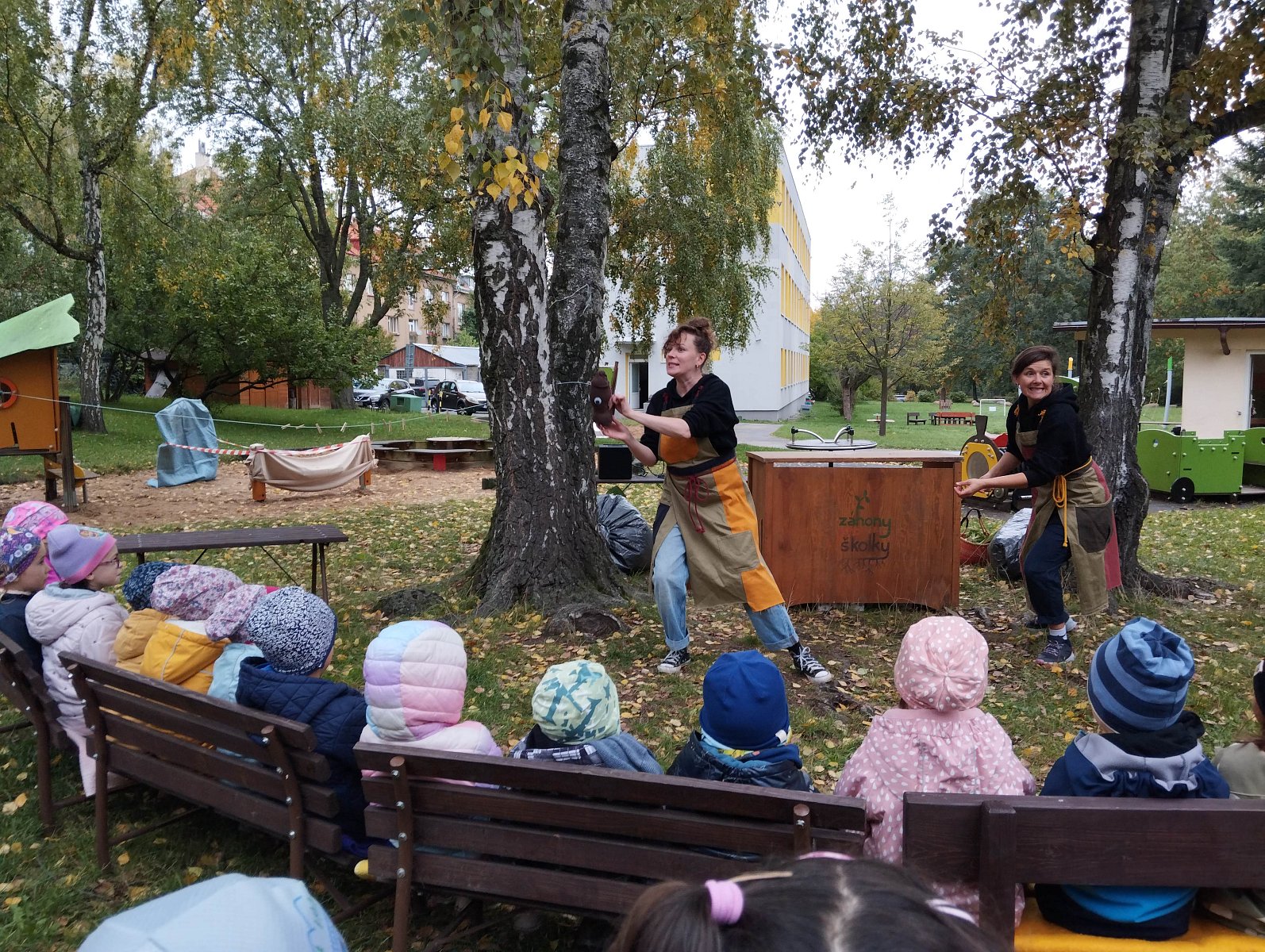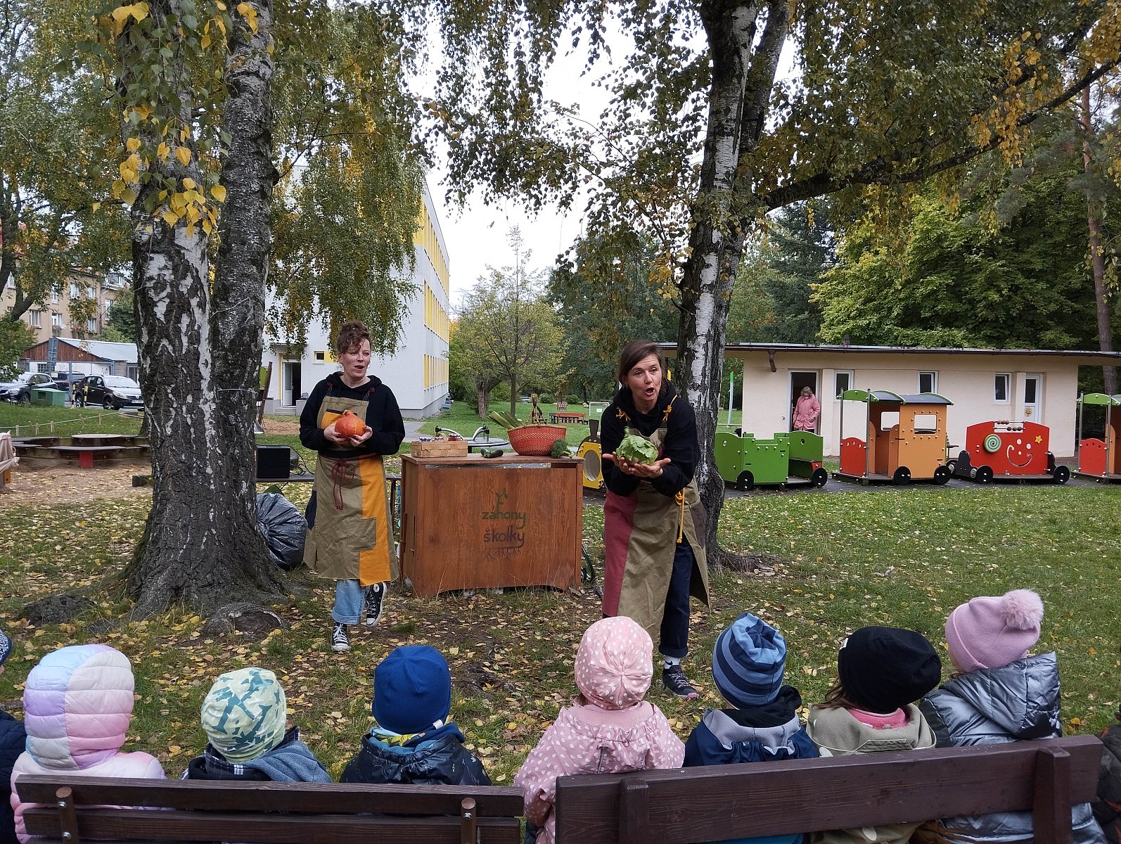 Spolek Záhony pro školky nás během října navštívil několikrát. Nejprve si pro nás lektorky připravily interaktivní program, kdy se každé třídě věnovaly samostatně, a v dalších dnech pro nás zajistily krásné divadelní představení O semínku.
