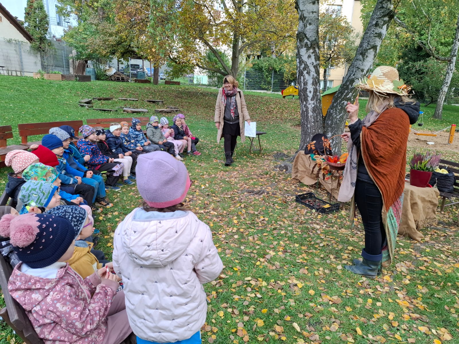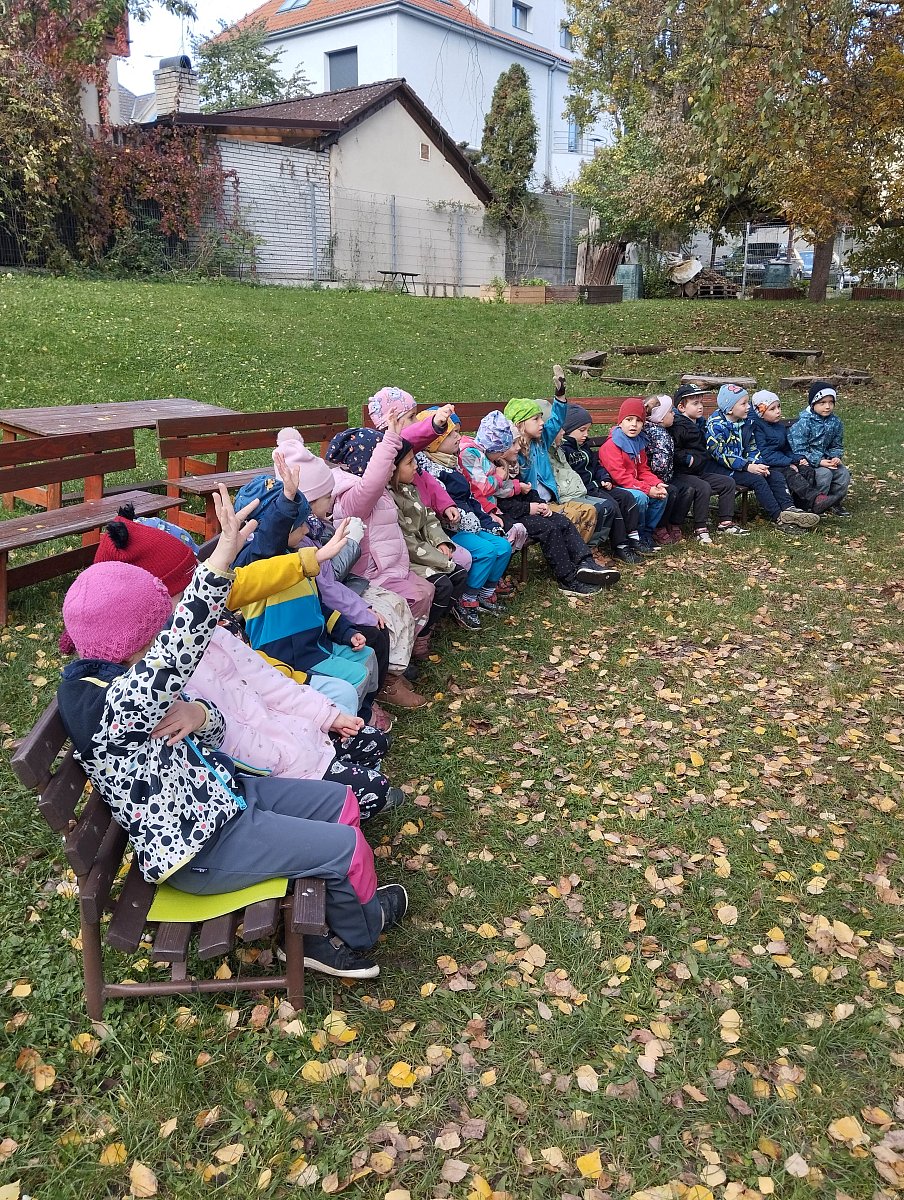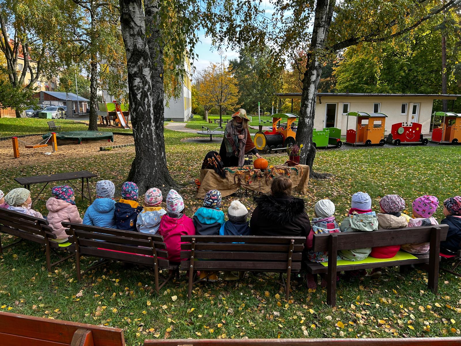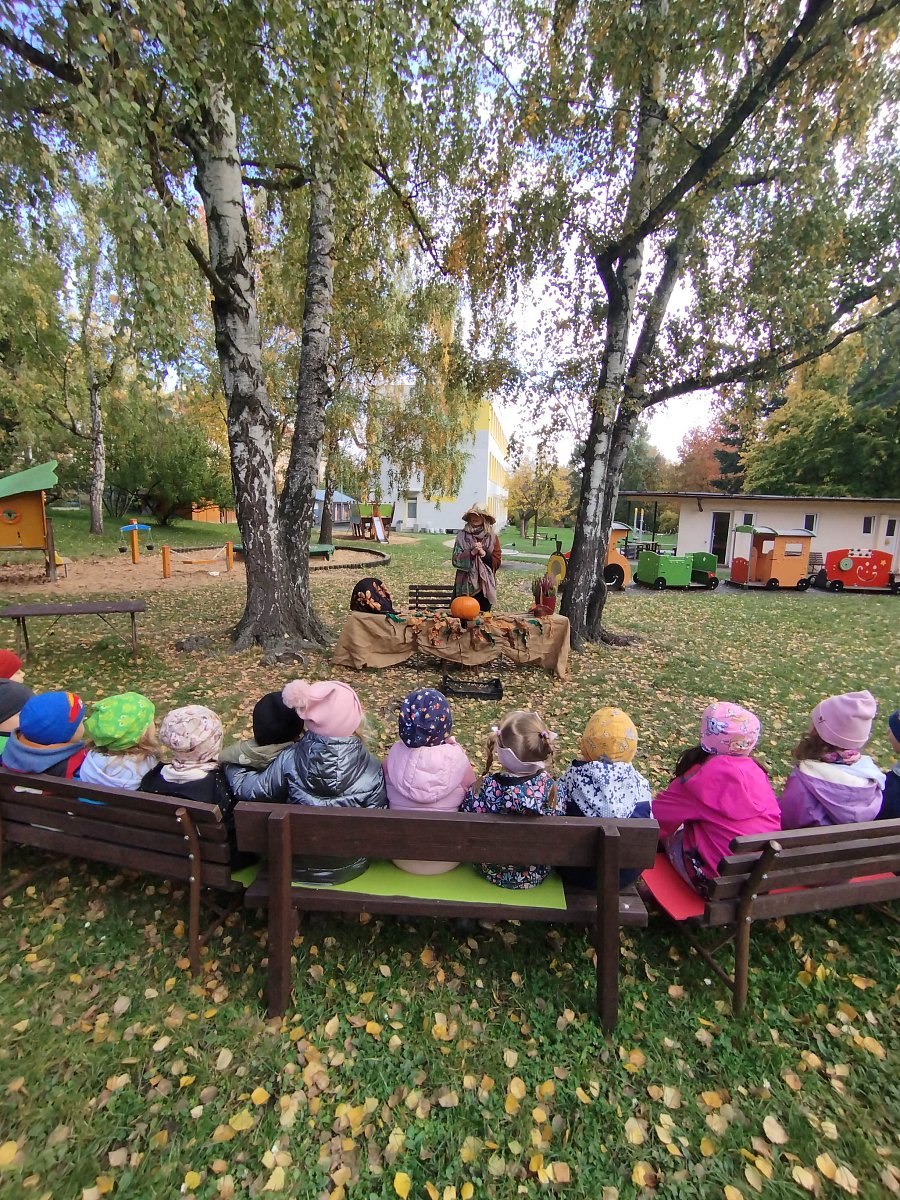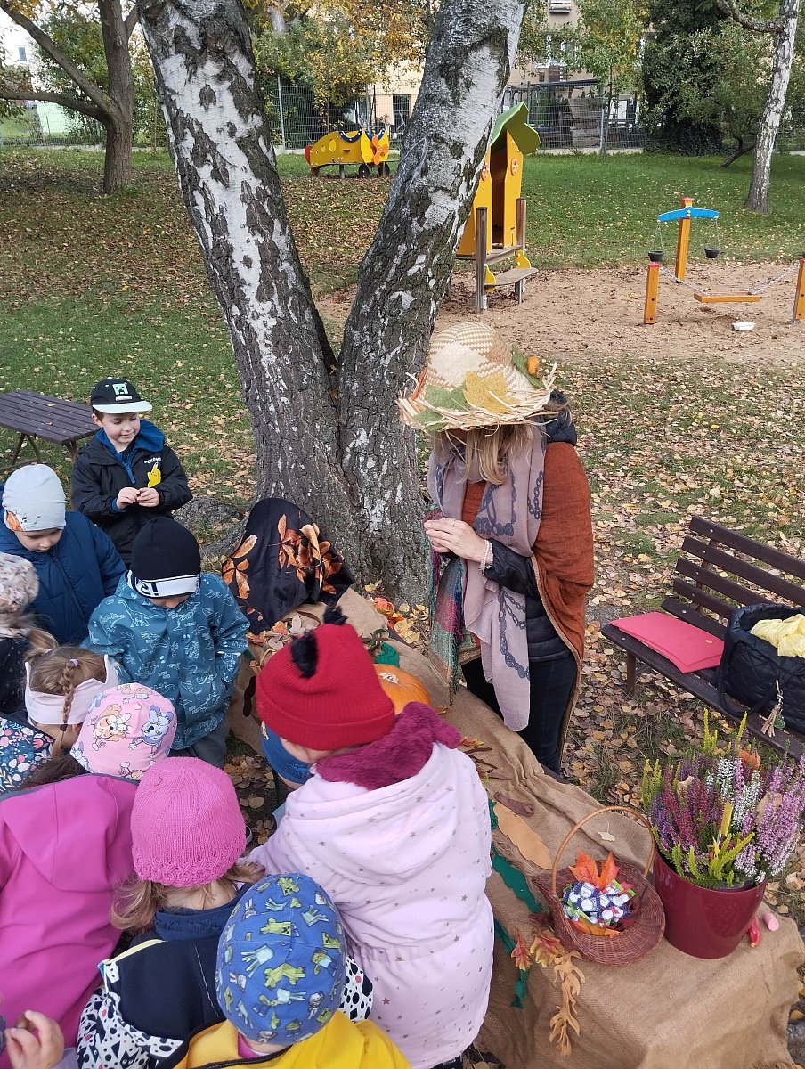 Již tradičně se všechny děti vydaly na stezku Za Podzimní paní. Cesta naší rozlehlou zahradou byla jako vždy plná rozmanitých aktivit spojených s podzimním obdobím - sportovních, logických, smyslových a hlavně edukativních. Děti si stezku moc užily a na závěr dostaly od Podzimní paní darem krásný list, z něhož se stala výtvarná aktivita na další dny ve školce...