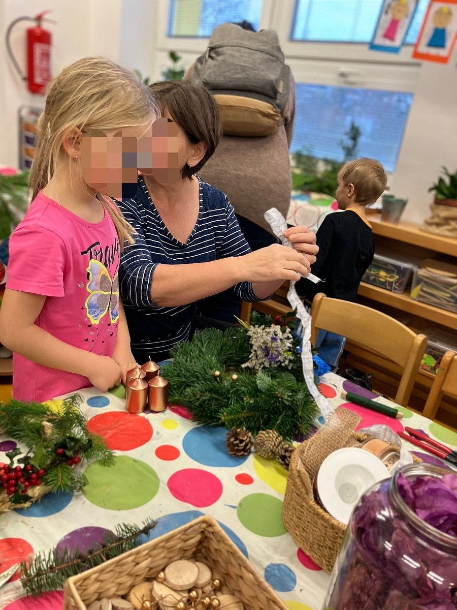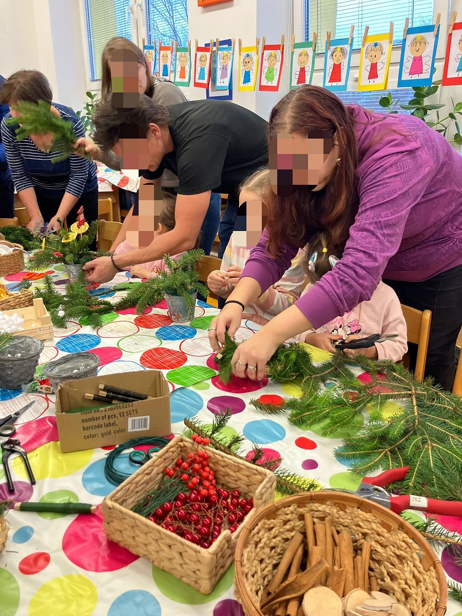 27. listopadu se druhé patro naší školky proměnilo ve vánoční dílnu. Děti tvořily společně s rodiči, prarodiči i sourozenci. Vánoční atmosféru dokreslovalo pohoštění a všudypřítomná vůně chvojí.